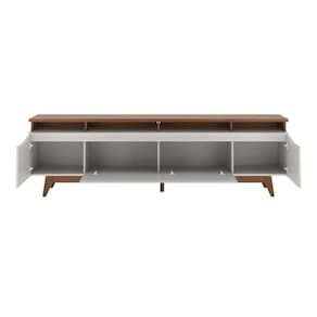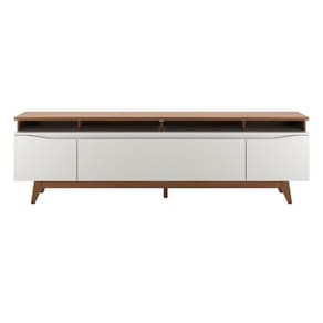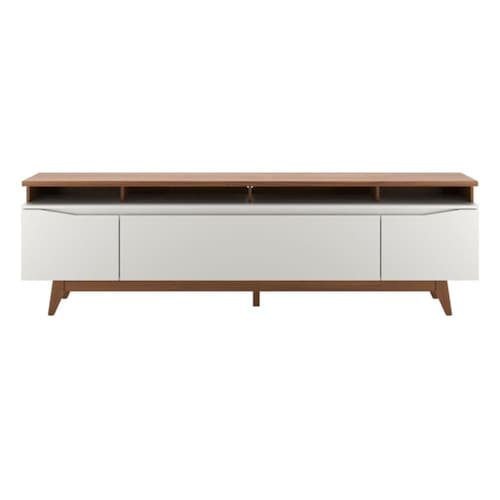 Seus pés altos em madeira maciça Tauari trazem leveza e facilitam a limpeza. Ideal para TVs de até 75 polegadas, acomoda também eletrônicos e itens decorativos. Perfeito para manter o ambiente moderno, organizado e cheio de personalidade.