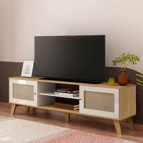 O(a) Rack para TV Até 75 Polegadas Charlotte 2 Portas Carvalho/Off White - Artely Móveis é produzido em MDP na escala de brilho Fosco, e possui um grau de dificuldade de montagem: Médio.