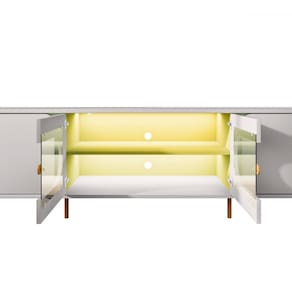 O(a) Rack para TV Até 75 Polegadas Evans 4 Portas com Vidro e Led Off White/Pistache - Pnr Móveis é produzido em MDP na escala de brilho Brilho, e possui um grau de dificuldade de montagem: Médio.
