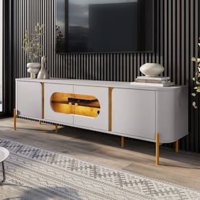 Rack para TV Até 75 Polegadas Juquehy 4 Portas com Vidro e Led Off White/Naturallle - Móveis Bechara - Marrom