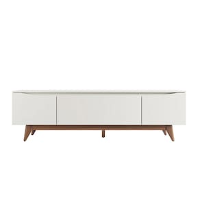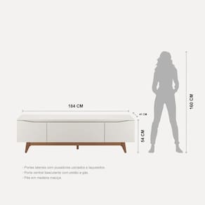 Com 1.8 metros de largura, o Rack Flynt proporciona amplo espaço para organização. Seu acabamento em off-white fosco confere um toque de modernidade, enquanto seus pés em madeira maciça na cor natural adicionam um charme rústico e acolhedor.