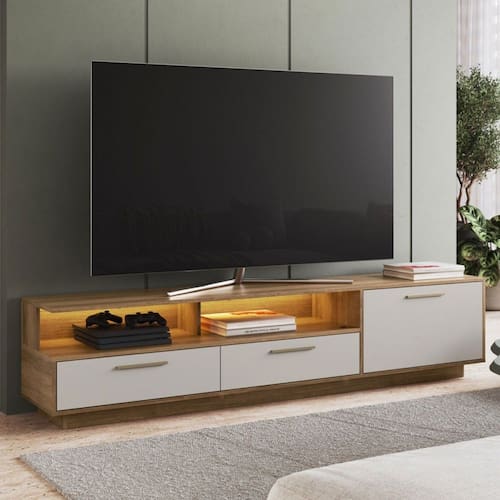 O(a) Rack para TV Até 75 Polegadas Ravana 1 Porta 2 Gavetas com Led Arenas - Art In Móveis é produzido em MDP na escala de brilho Fosco, e possui um grau de dificuldade de montagem: Médio.