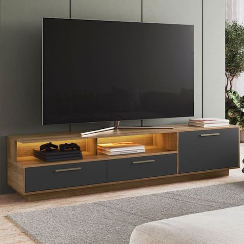 O(a) Rack para TV Até 75 Polegadas Ravana 1 Porta 2 Gavetas com Led Grafite - Art In Móveis é produzido em MDP na escala de brilho Fosco, e possui um grau de dificuldade de montagem: Médio.