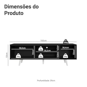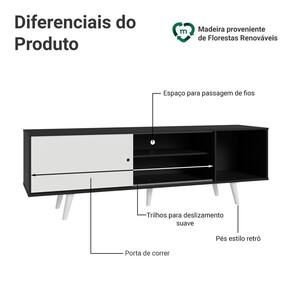 Com design contemporâneo, o móvel conta com uma estrutura moderna e funcional, três nichos em diferentes tamanhos e uma porta de correr, ideais para organizar eletrônicos, livros ou objetos decorativos. Também oferece espaço para TVs de até 80 polegadas.