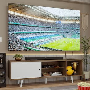 Com design contemporâneo, o móvel conta com uma estrutura moderna e funcional, três nichos em diferentes tamanhos e uma porta de correr, ideais para organizar eletrônicos, livros ou objetos decorativos. Também oferece espaço para TVs de até 80 polegadas.