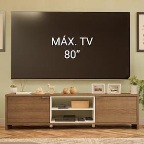 Além do espaço amplo para a TV, o móvel conta com 2 portas que garantem ótima capacidade de organização, e um nicho central pensado para acomodar aparelhos eletrônicos de forma prática e acessível.