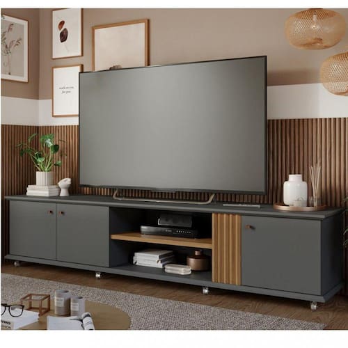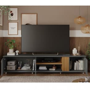 Características: 3 Portas Indicado para TV de até 60 polegadas Estrutura em MDF Rodízios