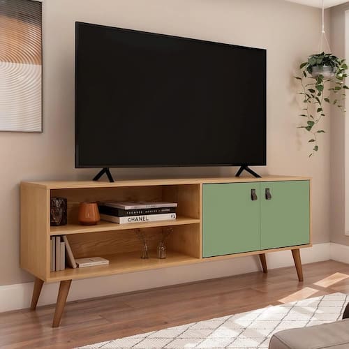 O Rack Amber é o parceiro ideal para deixar seu cantinho de entretenimento ainda mais completo e bonito. Com um tampo espaçoso, ele acomoda TVs de até 58 polegadas com tranquilidade. Já o nicho é perfeito para organizar os eletrônicos do dia a dia tudo no lugar para você curtir suas séries e filmes com muito mais conforto!