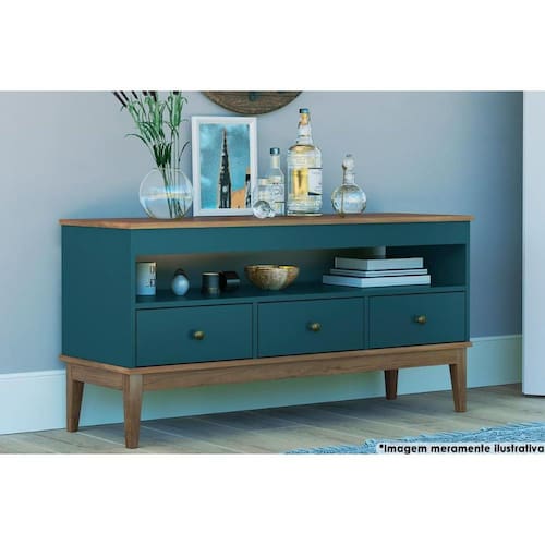 Rack para TV MB 1016 3 Gavetas Freijo/Petroleo - Movelbento