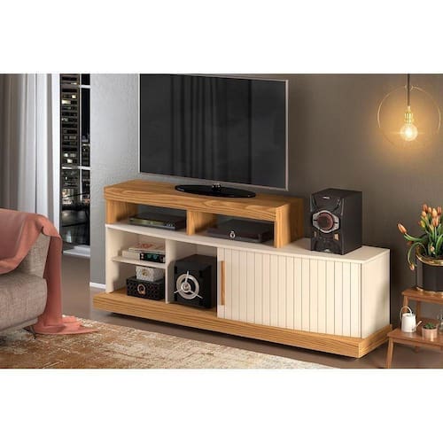 Rack para TV Scala até 47 Polegadas c/ 1 Porta de Correr e 5 Nichos Carvalho Nobre/Off White - DJ Móveis