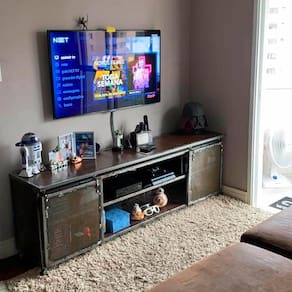 É ideal para apoiar sua TV e equipamentos de audio e video, o espaço para armazenagem nas portas vai ajudar a manter a casa toda em ordem.
