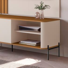 Pés e puxador em metal com design exclusivo;