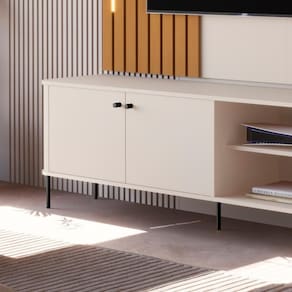 Pés e puxador em metal com design exclusivo;