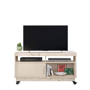 Com certeza ele é o móvel ideal para sua casa. Acabamento: Pintura UV Acabamento da Porta: Pintura UV Altura dos Pés: 6,5 cm Ambiente Principal: Sala de Estar Complexidade da Montagem: Média: pode ser montado por mais de uma pessoa e/ou necessite de maior conhecimento para montagem Cor: Calacata/Off White Cor do Produto: Calacata/Off White Escala de Brilho: Semi-Brilho Escala de Brilho da Porta: Semi-Brilho Ideal para TVs até (Polegadas): 50 Itens Inclusos: 1 manual de montagem Manual de Montagem e Instalação: https://product-hub-prd.madeiramadeira.com.br/935972/documents/0436b284-e20a-489a-92fa-22e51b25c4e7226921782617248558765222.pdf Material da Porta: MDP Material do Puxador da Porta: Poliestireno Material dos Pés: Plástico Material Principal: MDP Necessita Montagem: Sim Peso: 21,3 kg Possui Espelho: Não Possui Possui iluminação: Não Possui Pés: 04 Possui Portas: 01 Possui Prateleiras: Não Possui Vidro: Não Recomendações de Uso, Manutenção e Limpeza: Para a limpeza utilizar um pano limpo e seco. Não limpar com produtos abrasivos ou escovas;Não deixar exposta à luz do sol diretamente pois isso irá diminuir a vida útil do produto;Este produto Não é recomendado Para ambientes externos onde possa receber chuva. Rodízio com Trava: Sim Sapatas Niveladoras: Não Sistema de Montagem: girofix Tipo de Porta: Bater Tipo de Puxador da Porta: Externo
