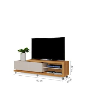 Este magnífico móvel dispõe de duas gavetas espaçosas, equipadas com corrediças telescópicas, proporcionando uma funcionalidade incrível para o armazenamento de itens diversos. Além disso, uma prateleira divide um nicho estrategicamente projetado para acomodar receptadores de TV a cabo e outros objetos de maneira organizada.