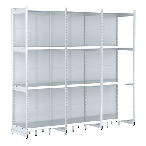 A fileira de Racks FIT deve ser iniciada com o Rack Inicial que possui 2 laterais. O Rack FIT Continuação possui 1 lateral, utilizado para dar continuidade à fileira e não pode ser montado individualmente.