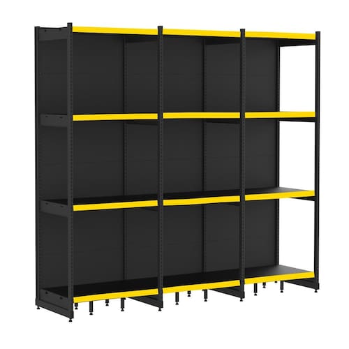 KIT GÔNDOLA RACK PAREDE OU LATERAL 202 FIT 1 INICIAL 2 CONTINUAÇÃO AMAPÁ 90X60 COR PRETO PORTA ETIQUETA AMARELO