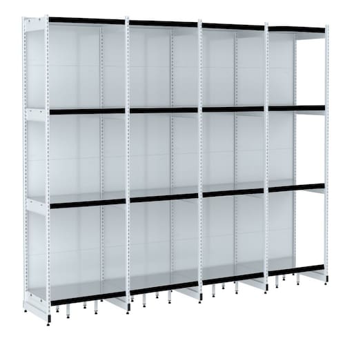 A fileira de Racks FIT deve ser iniciada com o Rack Inicial que possui 2 laterais. O Rack FIT Continuação possui 1 lateral, utilizado para dar continuidade à fileira e não pode ser montado individualmente.