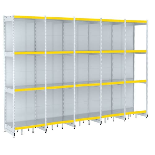A fileira de Racks FIT deve ser iniciada com o Rack Inicial que possui 2 laterais. O Rack FIT Continuação possui 1 lateral, utilizado para dar continuidade à fileira e não pode ser montado individualmente.
