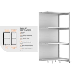 A fileira de Racks FIT deve ser iniciada com o Rack Inicial que possui 2 laterais. O Rack FIT Continuação possui 1 lateral, utilizado para dar continuidade à fileira e não pode ser montado individualmente.