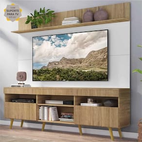 Conteúdo da Embalagem: 1 (um) Rack com Painel para TV e Prateleira 1 (um) kit com 6 (seis) pés retrô 1 (um) Kit com suporte para TV