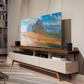 Com visual estiloso e autêntico, orack para sala retrôVivare Wood é o mais novo queridinho daGermai. Com design moderno, esse rack faz a diferença em qualquer ambiente onde for utilizado. Possui um espaçoso tampo, onde você pode acomodar seus objetos de decoração ou porta-retratos, ou até mesmo colocar uma TV de até 70 polegadas. Logo abaixo, conta com quatro nichos, que são ideais para eletroeletrônicos ou até mesmo livros. Conta ainda com três amplas gavetas com corrediças telescópicas, garantindo ainda mais durabilidade e qualidade. O diferencial desse belo rack fica por conta dos pés palito em madeira maciça, trazendo um pouco do estilo retrô. Um luxo, não é mesmo? Renove o visual da sua sala com esse maravilhosorack para sala retrô!