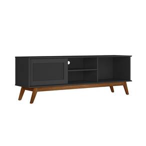 Rack Retrô Para Tv 60 Polegadas Panama - Preto Acetinado - Cor: Preto