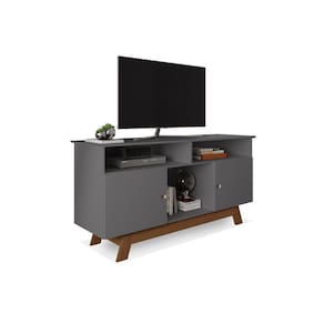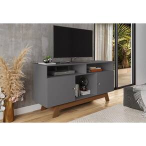 Rack Retrô Pés Madeira Porto Cinza Luapa Móveis