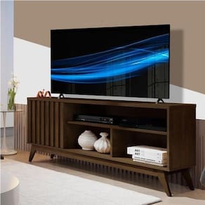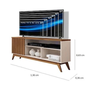Rack Retrô TV Até 60 Polegadas Pés De Madeira 1 Porta E Nichos Malbec Wood Ripado 1.36