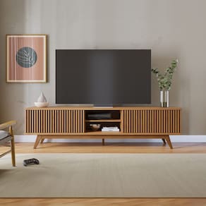 Com design contemporâneo, o Rack Fortaleza é ideal para TVs de até 75 polegadas. Suas quatro portas com ripado artesanal adicionam delicadeza e requinte ao ambiente, complementados pelos pés em madeira maciça. O nicho central é perfeito para acomodar aparelhos eletrônicos de forma prática e organizada, tornando o Rack Fortaleza uma peça elegante e funcional para sua sala de estar.