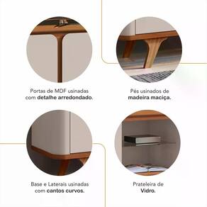 O Rack Roma a melhor escolha para sua sala. Com design retro que ir encantar voc. Ele possui tampo e base de MDF chanfrado em ngulo proporcionando ainda mais charme e requinte ao mvel. Seus ps so feitos de madeira macia garantindo com isso ainda mais qualidade e resistncia ao produto. Possui quatro portas com dobradias metlicas e amplo espao interno. Suporta TVs de at 60 polegadas e seus amplos nichos so ideais para acomodar aparelhos eletrnicos, objetos de decorao, entre outros.