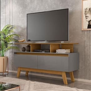 Rack Sala Rubi 1.2 para TV até 50 2 Portas Pé Madeira Macica - Cinza