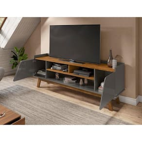 Rack Sala Turim para TV até 65 Polegadas com Pés Madeira - Cinza