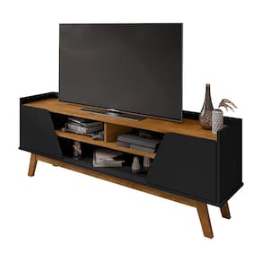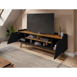 Rack Sala Turim para TV até 65 Polegadas com Pés Madeira - Preto