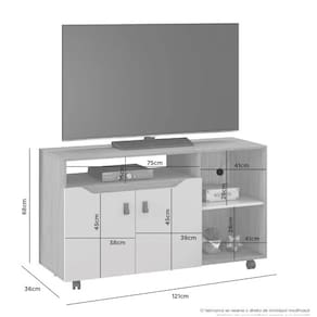 Portas com dobradiças de pressão Rodízios Puxadores de couro Espaço Tv:1210mmxLivre(LxA)