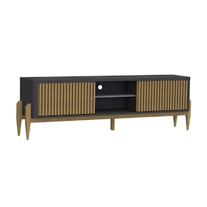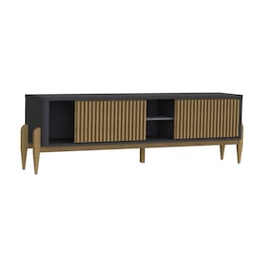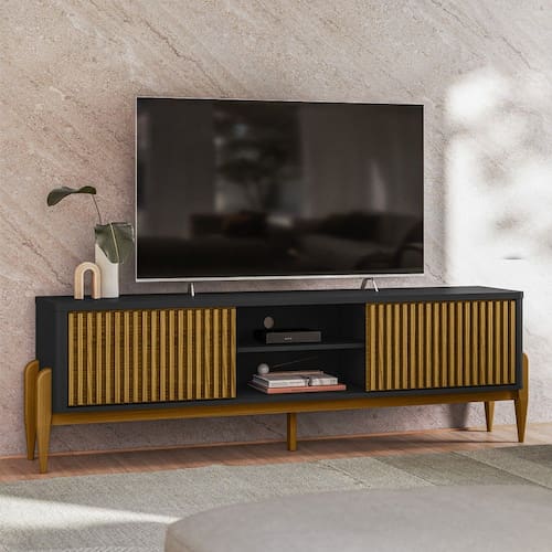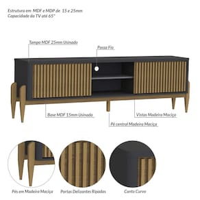 O Rack Sereno 1800mm é um produto com um design moderno e muito interessante, um dos seus diferenciais são os cantos curvados, as portas ripadas deslizantes, e os pés por fora das laterais, em madeira maciça encorpando e deixando o produto mais nobre, onde seu ambiente ficará agradável e aconchegante. enbsp;Sua estrutura é em MDF e MDP de 15 e 25 mm com um tampo de 25 mm. É um produto com design de uma pegada contemporânea onde você personaliza seu ambiente deixando-o exclusivo.