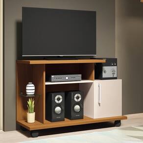 Rack Smart Cinamomo/off White Para Até 26 - Hb Móveis Cinamomo/off White Rack Smart para até 26 - HB Móveis O Rack é um produto compacto para pequenos ambientes e quartos. Possui 4 rodízios internos facilitando a movimentação, porta com puxador cromado e prateleira de vidro 6 mm com suportes metálicos, deixando seu ambiente elegante e valorizando ainda mais a sua decoração. ESPECIFICAÇÕES: - Estrutura em MDP e MDF de 25mm e 15mm - Pintura UV - Prateleira de vidro 6mm com suportes metálicos - Porta com dobradiças metálicas - Puxador em poliestireno cromado - 4 Rodízios facilitando a movimentação - Tampo para em MDP de 25mm de espessura - Ideal para até 26