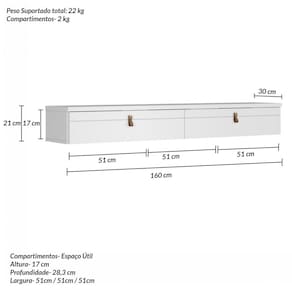 O Rack Suspenso Line 1600mm é um produto com um design moderno, possui duas portas basculantes enbsp;em MDF com frisos e puxadores caracterizando o couro natural. Sua estrutura é em MDF e MDP de 15 e 25 mm, possui três compartimentos internos. É um produto que você poderá instalar na parede de qualquer ambiente, no estilo contemporâneo, personalizando e deixando-o exclusivo.