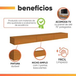 O Rack Suspenso para Painel EDN é ideal para deixar seu ambiente ainda mais bonito, moderno e versátil. Pode ser utilizado em diversos ambientes do seu lar, sozinho ou como complemento do seu painel. Possui duas portas basculantes, e um amplo espaço para objetos de decorações e aparelhos eletrônicos. Seu material de alta qualidade proporciona resistência e durabilidade ao produto.