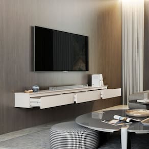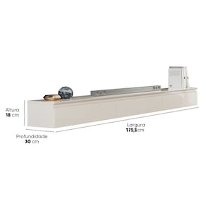 O Nicho Suspenso Aspen 1.80 acomoda TVs de até 75 polegadas, com 3 gavetas amplas para organização eficiente. Seu design moderno combina funcionalidade e presença visual, sendo perfeito para salas que valorizam decoração contemporânea e aproveitamento inteligente do espaço. Produto Montado: Sim Acabamento: Pintura UV Acabamento da Gaveta: Pintura UV Acabamento da Prateleira: Pintura UV Ambiente Principal: Sala de Estar codigo_ean: 7900288255471 Complexidade da Montagem: Média: pode ser montado por mais de uma pessoa e/ou necessite de maior conhecimento para montagem Cor: Off White Cor da Caixa: Off White Cor do Produto: Off White Escala de Brilho: Brilhante Escala de Brilho da Gaveta: Brilhante Escala de Brilho da Prateleira: Brilhante Espessura do Tampo: 1,8 mm Gaveta com Chave: Não Ideal para TVs até (Polegadas): 75 Itens Inclusos: 1 Rack Suspenso, Kit Ferragens e Manual de Montagem Linha ou Coleção: Aspen 1.80 Manual de Montagem e Instalação: https://product-hub-prd.madeiramadeira.com.br/576078766/documents/043f6933-ac1a-4c24-9787-2a023e8de96e3264491610717598517620405.pdf Marca: EDN Móveis Material da Gaveta: MDF/MDP Material da Prateleira: MDF Material Principal: MDF/MDP Necessita Montagem: Sim Origem do Produto: Nacional Peso: 23,29 kg Peso Máximo por Gaveta: 2 kg Peso Máximo por Prateleira: 5 kg Possui Adega: Não Possui Espelho: Não Possui iluminação: Não Possui Passa Cabos: Sim Possui Pés: Suspenso Possui Portas: Não Possui Prateleiras: Sim Possui Vidro: Não Quantidade de Gavetas: 03 Gavetas Recomendações de Uso, Manutenção e Limpeza: Limpar com pano macio e levemente umedecido com água. Evitar produtos abrasivos, álcool, solventes ou esponjas ásperas. Secar imediatamente após a limpeza. Sistema de Montagem: Parafusos, Cavilhas e MiniFix Tipo de Corrediça da Gaveta: Metálica Telescópica Tipo de Puxador da Gaveta: Embutido