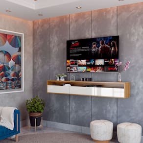 MDFO Rack Suspenso para TV Life 1.36 - MoveisAqui faz-se super versátil, podendo ser utilizado em diversos ambiente. Como por exemplo: em seu quarto, sua sala de TV e estar, irá abrilhantar o seu espaço proporcionando charme e organização. Com três portas é ideal para manter seu espaço organizado.