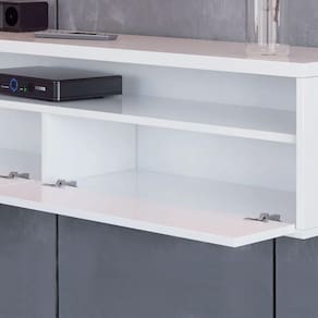Rack Suspenso Pequeno De Parede Ou Painel Para Sala De Tv Ou Quarto Life 1.12 - Branco - Moveisaqui O Rack Suspenso para TV Life 1.12 - MoveisAqui faz-se super versátil, podendo ser utilizado em diversos ambiente. Como por exemplo: em seu quarto, sua sala de TV e estar, irá abrilhantar o seu espaço proporcionando charme e organização. Com três portas é ideal para manter seu espaço organizado.Dimensões do Produto montado:Altura: 25 cmLargura: 112 cmProfundidade: 27 cmObservações:- Nicho amplo;- Três portas articuladas;- Ideal para Tvs de até 50 polegadas;- Pintura Ultravioleta com acabamento acetinado. Marca: Não Informado
