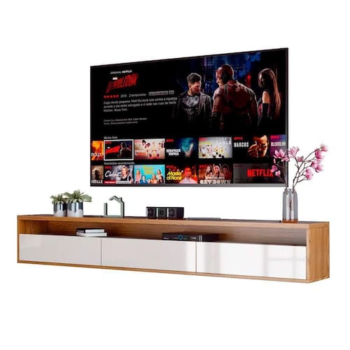 Rack Suspenso Pequeno De Parede Para Sala De Tv Ou Quarto Life - Off White Com Freijo - Moveisaqui O Rack Suspenso para TV Life - MoveisAqui faz-se super versátil, podendo ser utilizado em diversos ambiente. Como por exemplo: em seu quarto, sua sala de TV e estar, irá abrilhantar o seu espaço proporcionando charme e organização. Com três portas é ideal para manter seu espaço ões do Produto montado:Altura: 25 cmLargura: 112 cmProfundidade: 27 cmObservações:- Nicho amplo;- Três portas articuladas;- Ideal para Tvs de até 50 polegadas;- Pintura Ultravioleta com acabamento acetinado. Marca: Não Informado