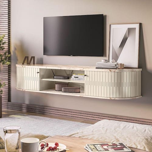 Esse é o Algarve, ele é um móvel para quem busca tendência de decoração e ao mesmo tempo algo inovador. Tem 1,83m de largura e vai bem com Tvs de até 75 polegadas. O detalhe inédito do produto é o tampo e base com formato curvo, incrível né? Características.: