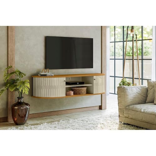 Rack Suspenso Ripado Modena para TV até 60 polegadas - Cumaru / Opala - Madetec - Marrom