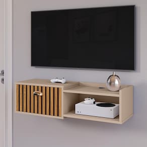 Conta com uma porta com amplo espaçamento interno, nicho decorativo e tampo espaçoso, atributos perfeitos para acomodar objetos eletrônicos e decorativos.