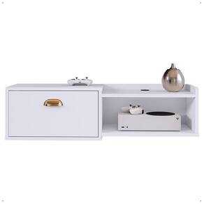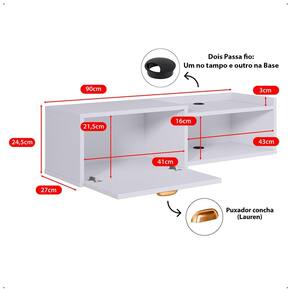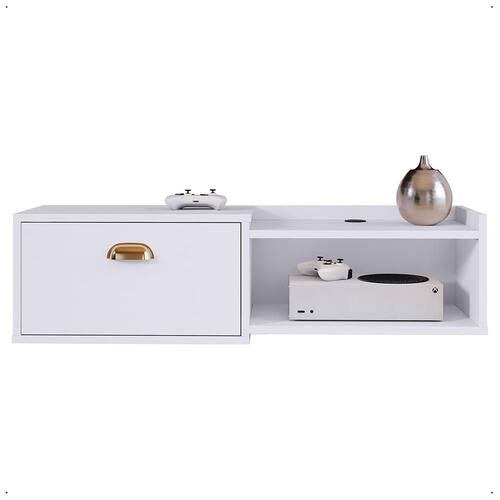 Rack Suspenso TV Smart 32" Bancada Canadá 1 Porta Puxador Concha Nicho Decoração Sala Quarto Branco – Lojas RPM