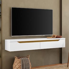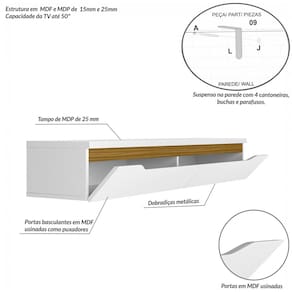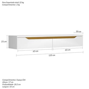 Rack Suspenso Uno P/ Tvs Até 50 Polegadas 135cm 2 Portas Branco/Cedro - Olivar Móveis