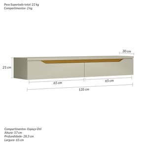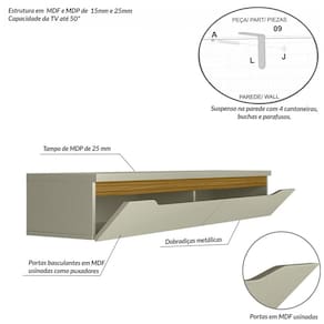 Rack Suspenso Uno P/ Tvs Até 50 Polegadas 135cm 2 Portas Off White - Olivar Móveis