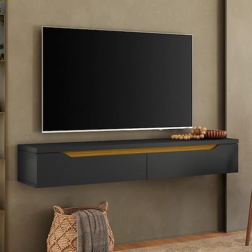 Rack Suspenso Uno P/ Tvs Até 50 Polegadas 135cm 2 Portas Preto/Cedro - Olivar Móveis